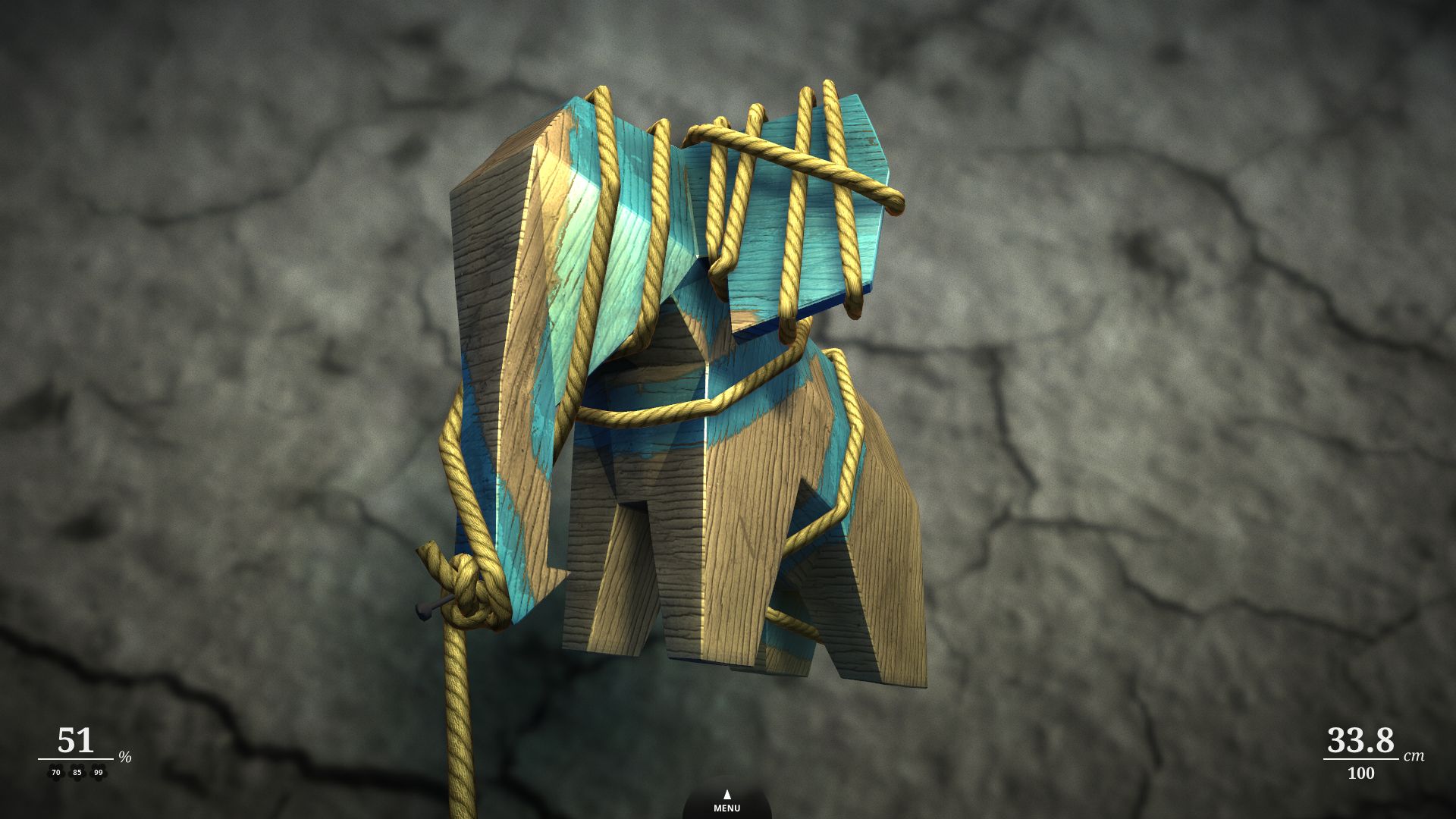 游戏的目的是通过将木雕包裹在绳子中来绘画,这一任务听上去很简单,但是却具有惊人的复杂性。 每个级别都是一个空间难题。 某些关卡带有彩弹,有助于掩盖物体的复杂区域。