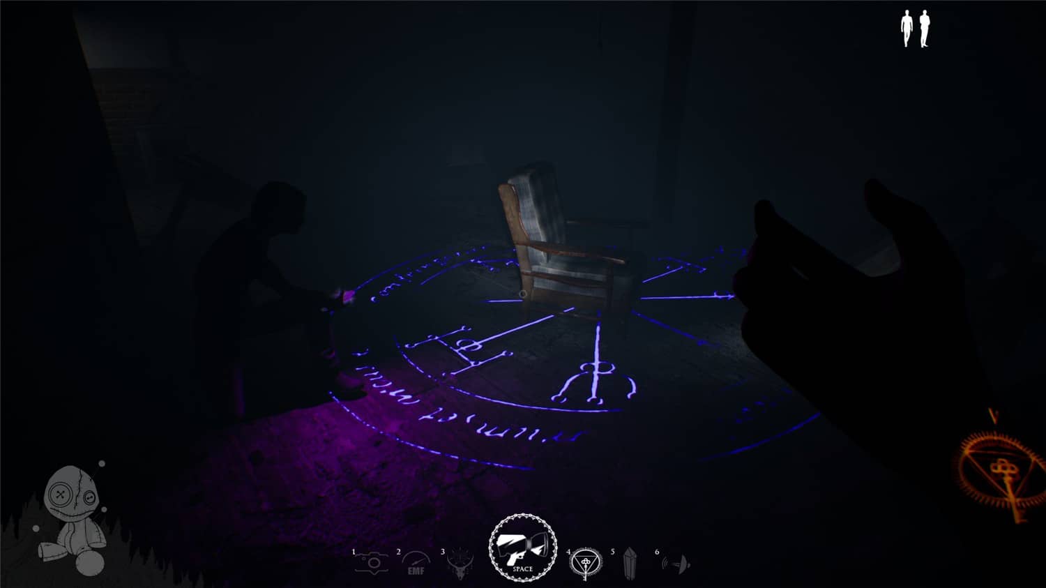 在游戏《闹鬼追逐者(Haunt Chaser)》中进行多人联机游戏,扮演一名猎魔者,使用不同的道具去猎杀恶魔,同时去解救那些陷入恐怖之中的人,暗黑的色调,非常诡异的背景音乐,带给玩家超真实的冒险体验。