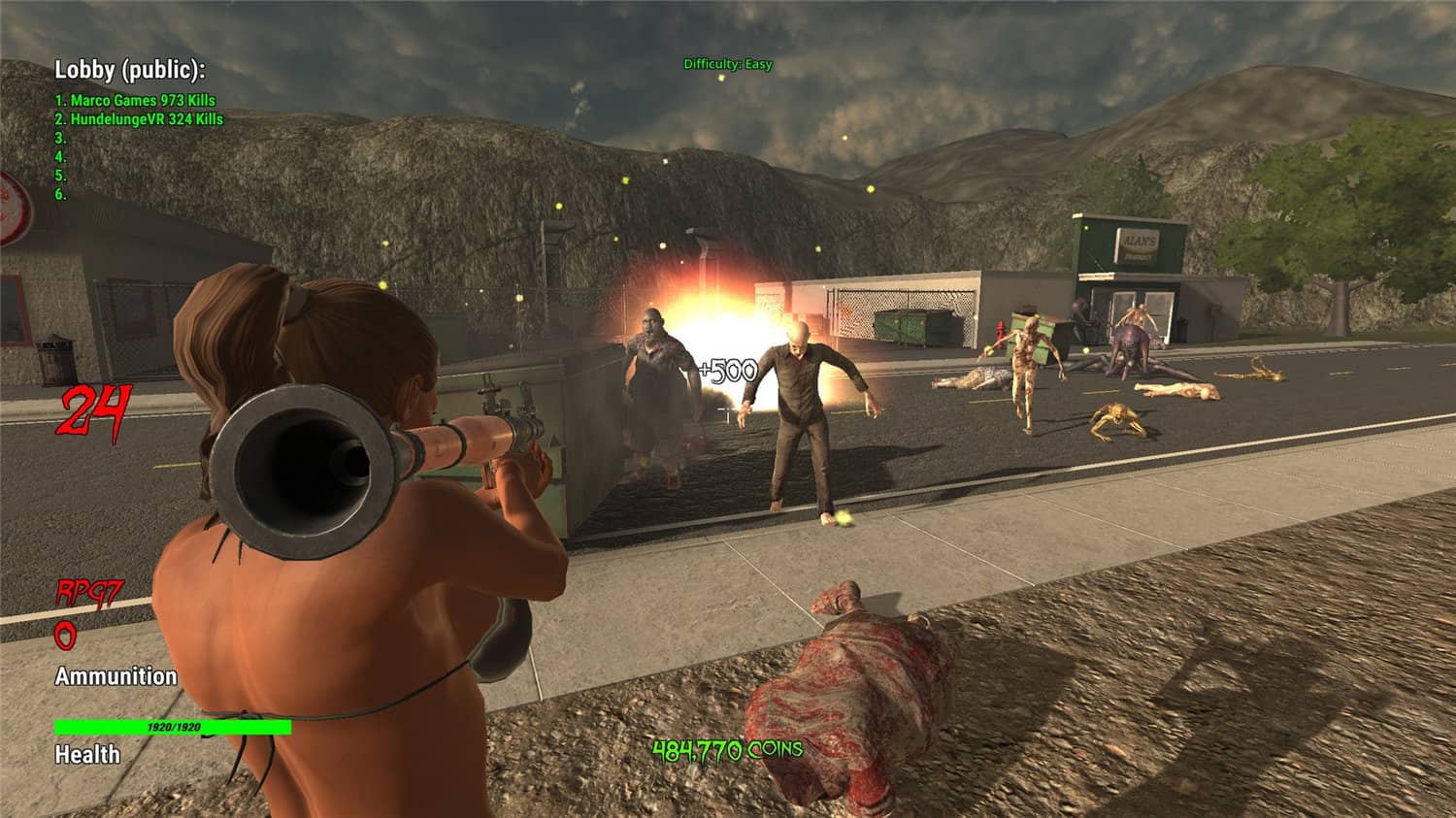 在僵尸村,您可以与其他玩家一起或单独在不同的地图上对抗僵尸和变种人,目标是尽可能多地生存。 游戏总是从 1 级开始,随着每级的增加,更多的僵尸和更强大的僵尸来了。