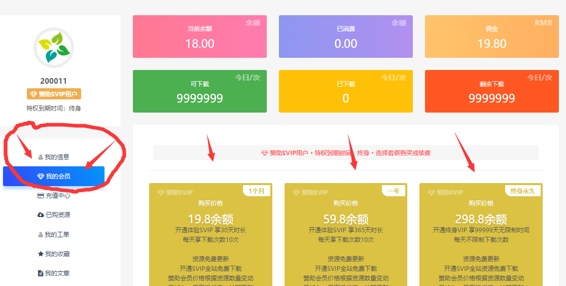 正文概述 第一步: 点击首页【注册/登录】按钮,进行注册账号,如下图 第二步:登陆后点击【头像名称】进入个人中心,如下图 第三步:进入个人中心后,左侧栏点击【我的会员】,如下图 开通步骤与流程到这里结束,可根据自身需求选择对应的类型 有其它疑问或者需要了解的,可以点网站右侧栏联系在线客服 添加搜索客服QQ:993992593进行咨询